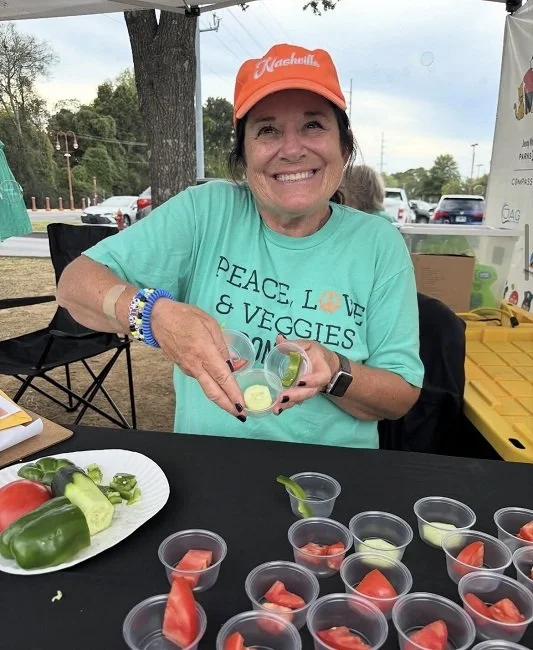Jane is also a familiar face at the Old Hickory Farmers Market. A passionate advocate for local food and community connection, she helped establish the HIP Donelson Farmers Market alongside Frank Trew during her time as Director of FiftyForward. Her continued work with the Hip D team brings her great joy, especially through her involvement in the Pop Club where she delights in watching children try fresh fruits and vegetables, often for the very first time.